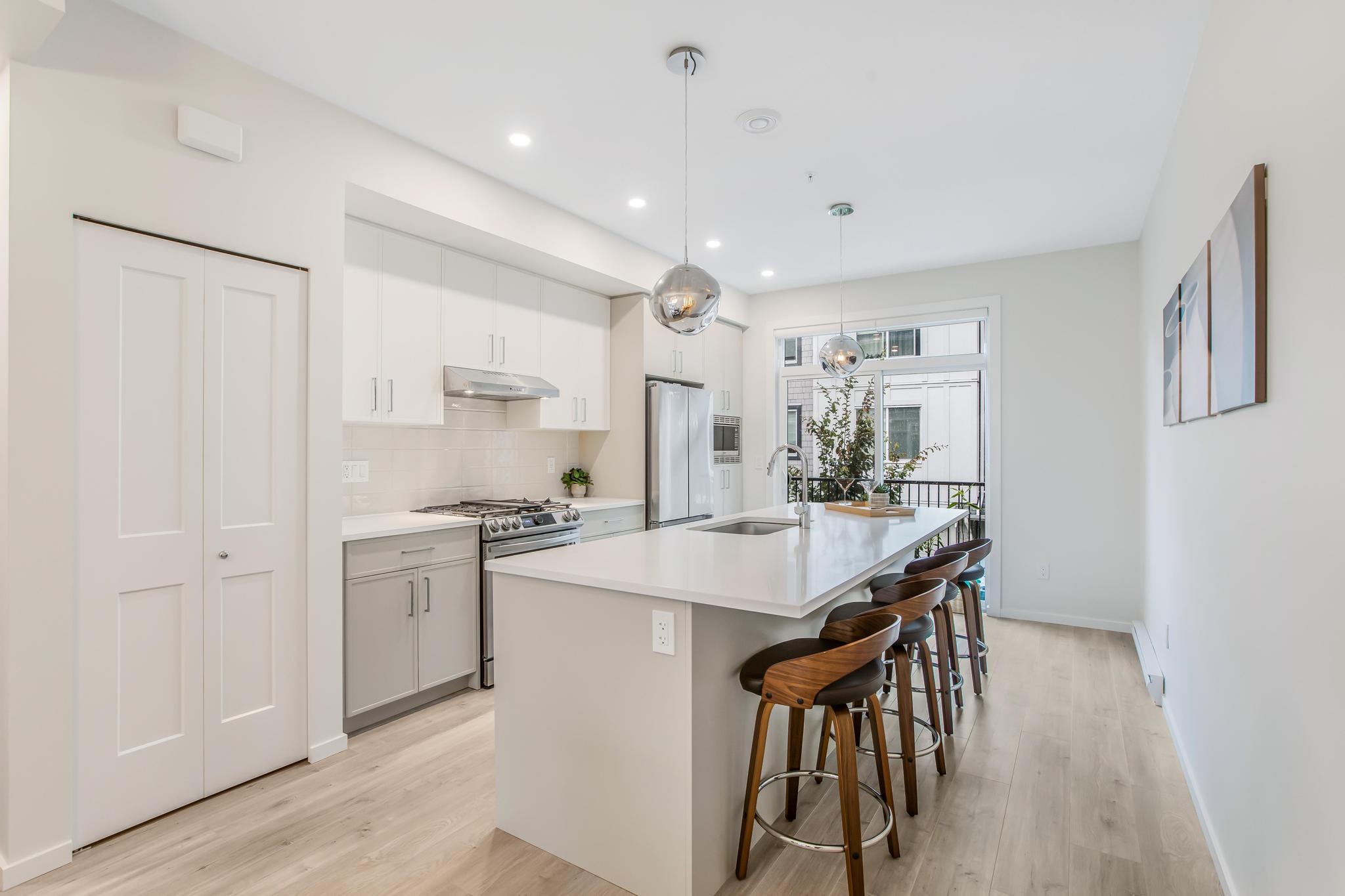Welcome to Kinship in Willoughby! Proudly developed by award-winning Park Ridge Homes, this 3 BED + 3 BATH townhome (full bath and bed on ground level) is just 2 years young and still under warranty. Featuring an open-concept layout with upgraded light fixtures, gas stove, Samsung appliance package, and a south-facing balcony, this home is bright, functional, and meticulously cared for. Nestled in a quiet yet convenient neighborhood, Kinship is a family-friendly community steps to Willoughby Town Centre, schools, parks, shopping, and minutes to Willowbrook and Hwy 1.