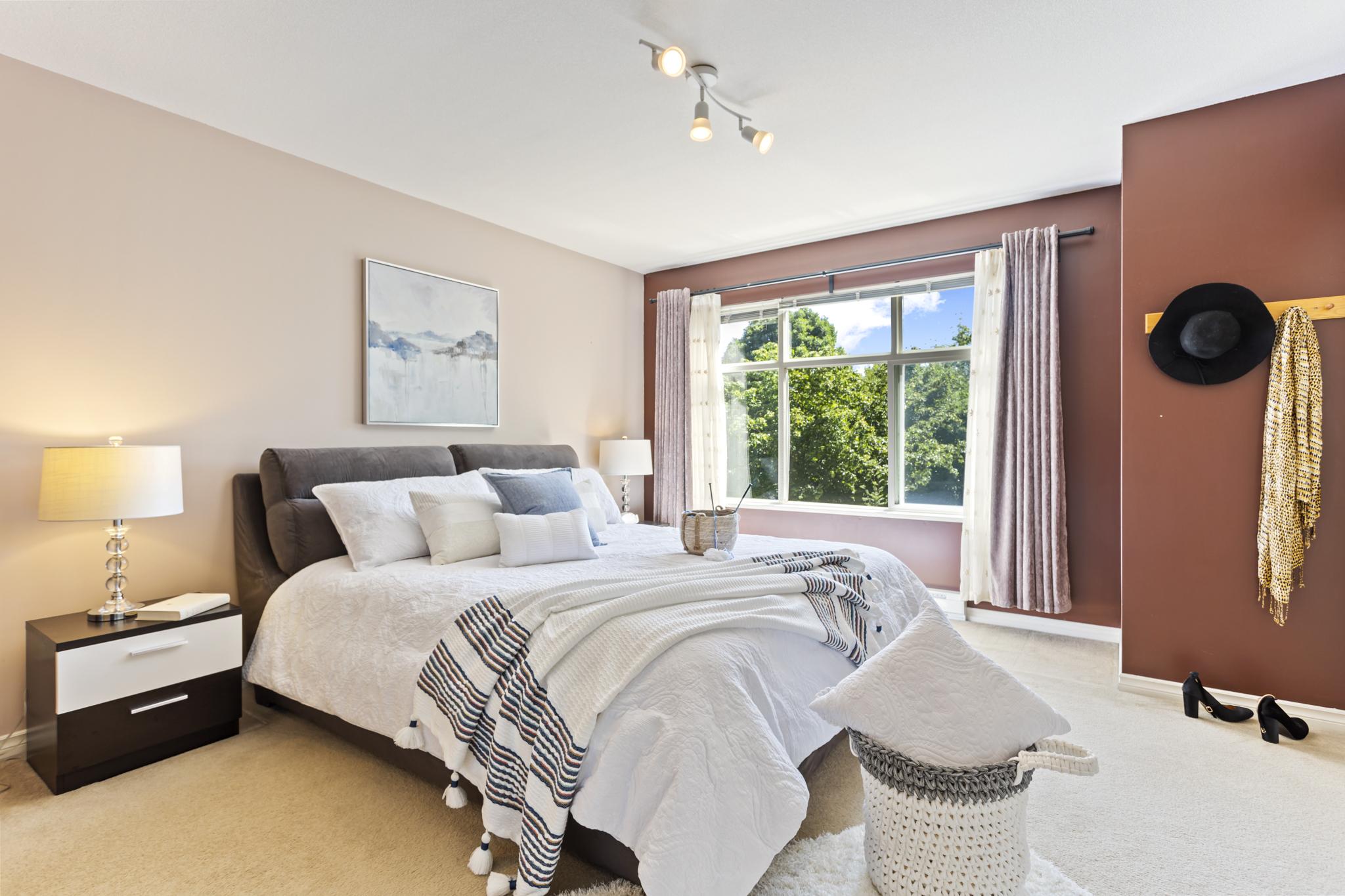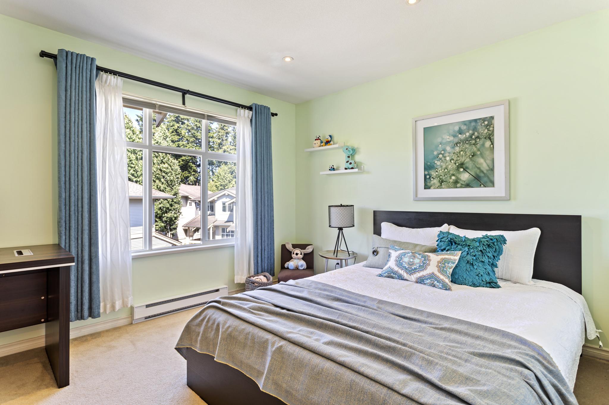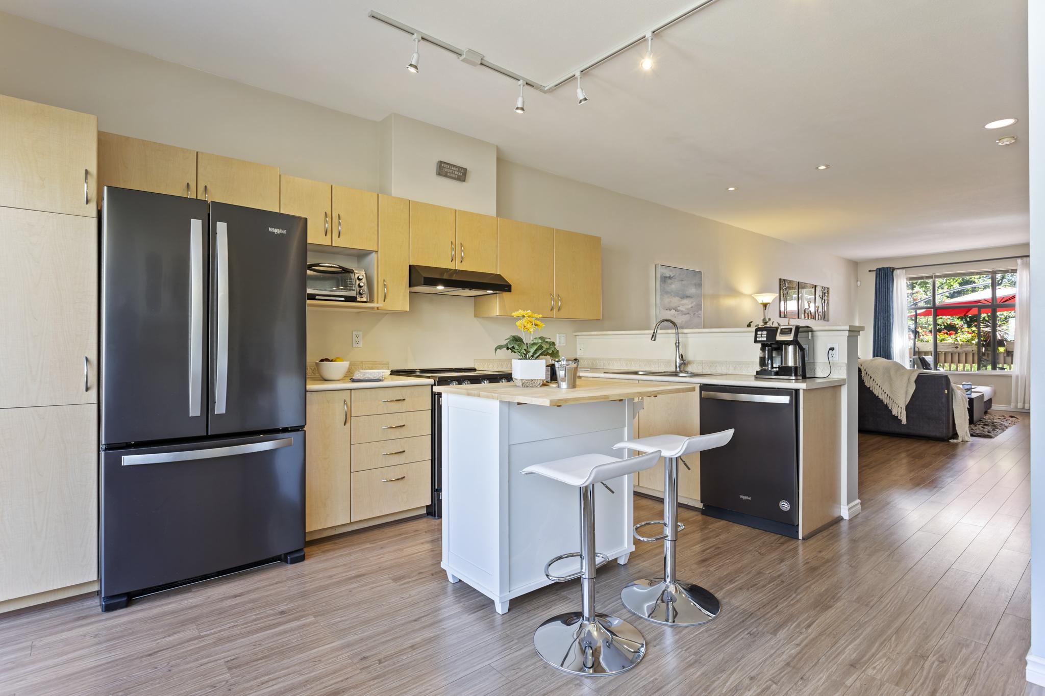 Welcome to SKYLANDS in Sullivan Heights! This is one of the most sought after units located in a desirable, quiet, and well maintained townhouse complex. This 2BED + 2BATH 1,400+ sq. ft. unit has an OPEN FLOOR PLAN with extra large windows at each end for an extremely BRIGHT & open feel, plus a large deck off the family room and a covered deck off the dining area. Upstairs offers 2 large bedrooms w/ENSUITE & 2 CLOSETS in Master. Garage can fit two cars plus plenty of street parking outside your door and visitor parking in the complex. CENTRAL LOCATION within walking distance to YMCA w/POOL, Panorama Village Shopping, restaurants and more.